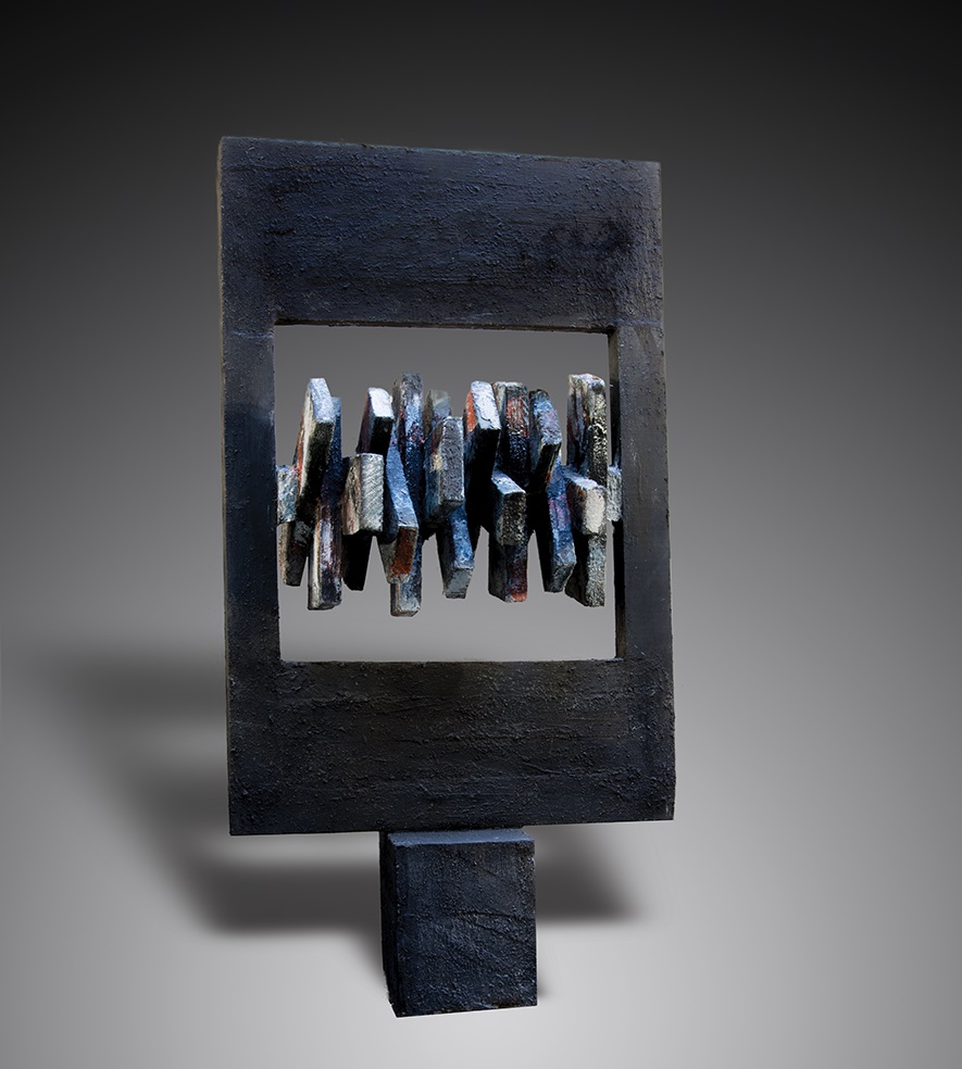 Овие испреплетени облици, прецизно градени, напластени дрвени форми, во нивната сложена разновидност, во варијабилната низа на асоцијации (од чисти геометриски до асоцијативни флорални мотиви), во себе носат карактеристики на едно, медитативно и наместа ирационално расположение кое го емитуваат неговите спонтани игри на архитектонски градените асоцијативни вертикали. Патоказот во барањето меѓу идеализираното и животното, е насочен кон проблемско и загадочно, кое во последните дела добива епилог на траење, како блесок на трагата на возбудата. Експресивно зајакнати психолошки состојби се манифестираат во изразот на внатрешната архетипска снага и нејзиното распространување, во големиот бран на декоративните геометриски созвучија.