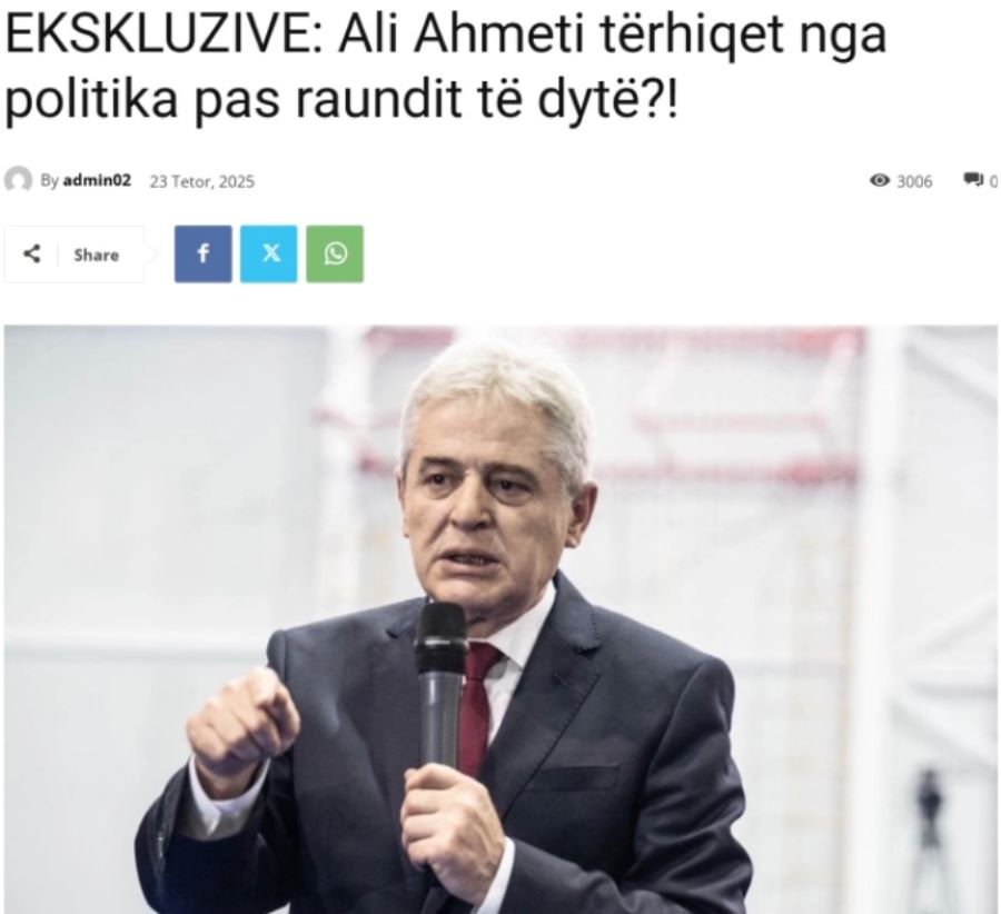 „Дали слушнавте кој победи? Зошто да се повлечам од политиката? Дали ги сакате резултатите? Одете во ДИК и ќе видите. Ако може да видите дали за 25 години има еден пораз на Али Ахмети тогаш ќе се повлечам. Еве ги резултатите. 25 години сме победувале, не само последниве три циклуси. Апсолутно не е пораз во Тетово и Струга. На 2 ноември играта почнува од нула. За Чаир и Сарај. Во битките има и порази“, рече Ахмети.
