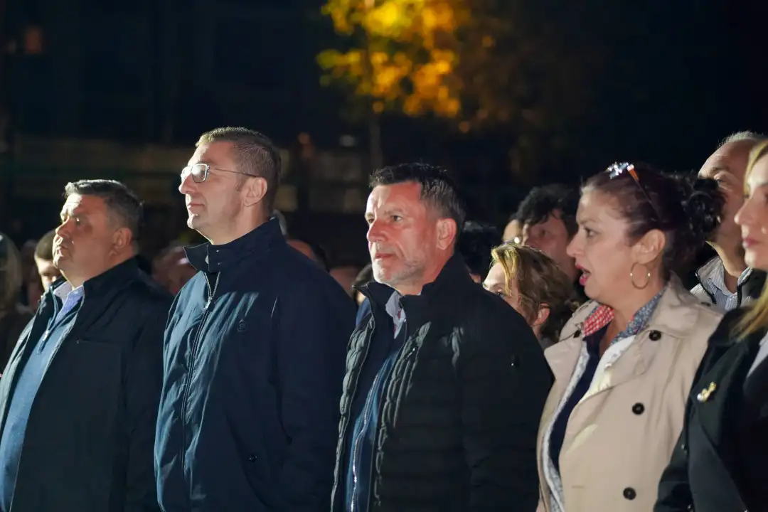 „Поддршката што ни ја давате е практично којашто нè прави посилни, за да можеме да победуваме онаму каде што бев пред неколку дена, во Лондон, каде што ќе одам сега в понеделник, во Брисел. Да победуваме во Берлин, да победуваме во Париз, да победуваме во Рим, во Вашингтон… Колку дома сме посилни, колку посилна поддршка добиваме од вас, толку повеќе надвор нè ценат и толку посилни се нашите аргументи’, порача Мицкоски од Пробиштип.