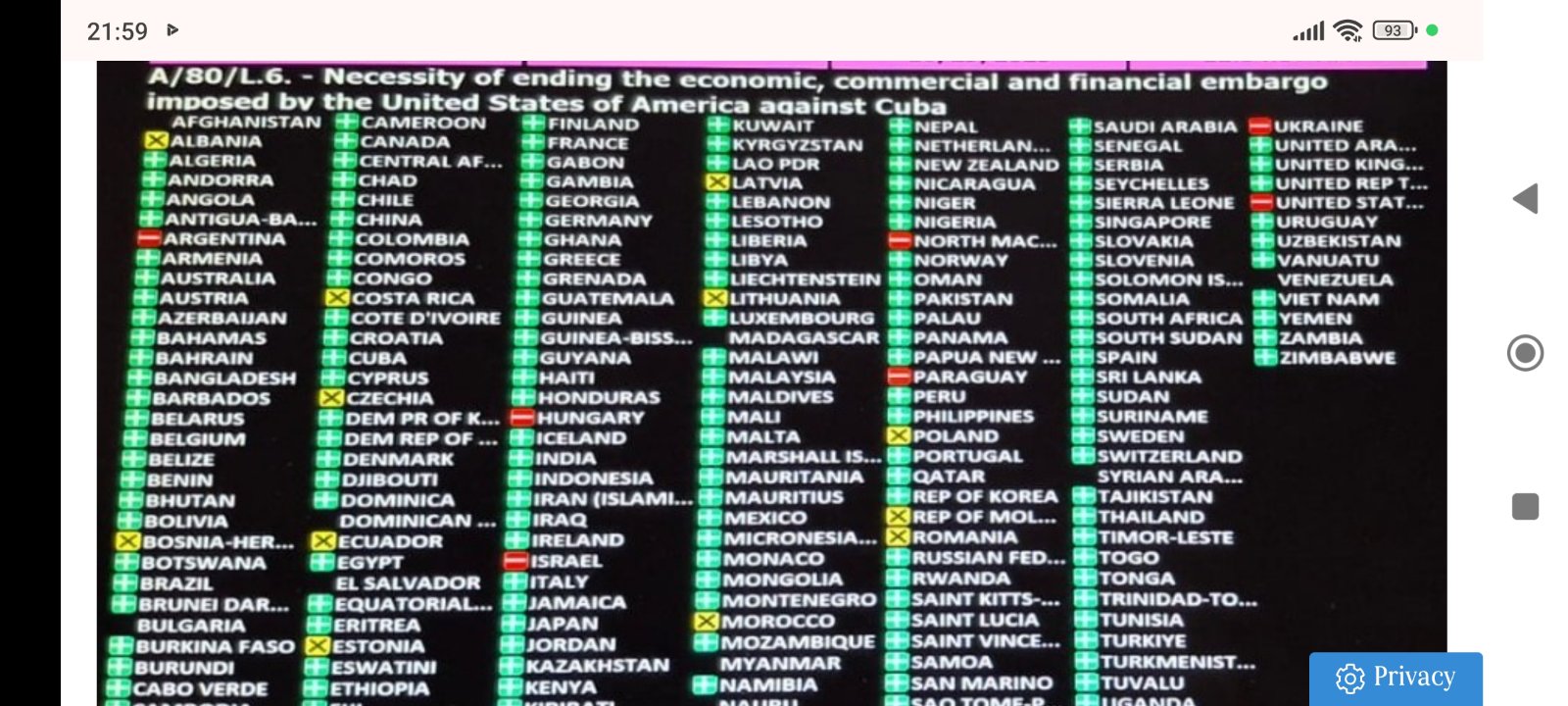 Во Резолуцијата се бара крај на американските санкции кон Куба, кои се во сила цели 63 години. Два дена траеше расправата во Генералното собрание за потребата да се укинат најдолгите санкции од САД кон некоја земја, воведени уште во 1962 година како одговор на кубанската ракетна криза.