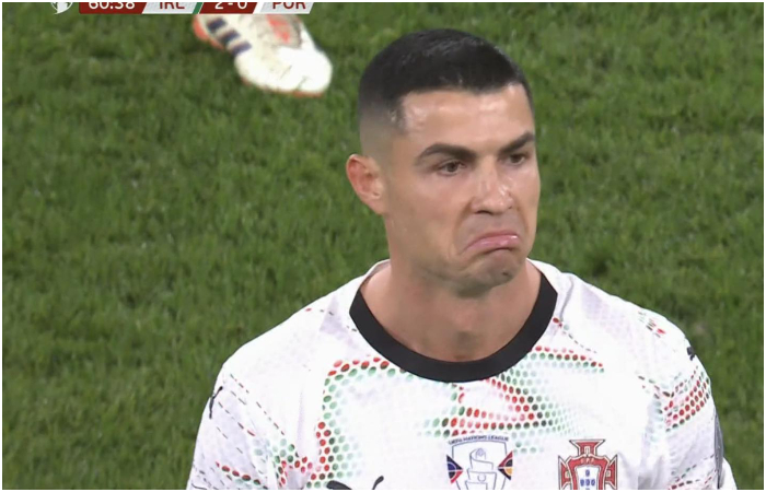 Кристијано Роналдо на дуелот против Ирска заработи црвен картон, откако целосно го изгуби трпението во 61-та минута. Во еден дуел, Роналдо удри со лакт еден ирски играч. Видеото со забавена снимка јасно го покажува лактот што судијата го прегледал по повикот од ВАР собата. Без многу размислување, судијата Ниберг му покажа директен црвен картон на Роналдо.