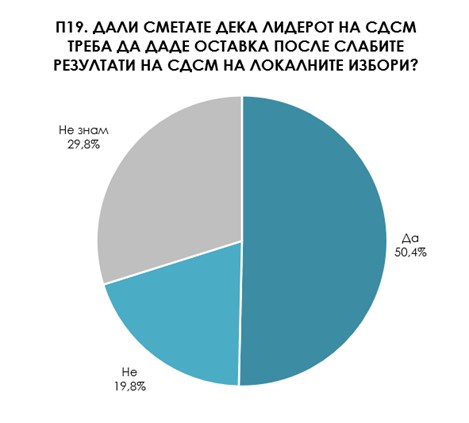 Во однос на случувањата во СДСМ повеќе од половина од испитаниците се согласуваат дека лидерот на СДСМ Венко Филипче треба да даде оставка после слабите резултати на неговата партија на локалните избори.