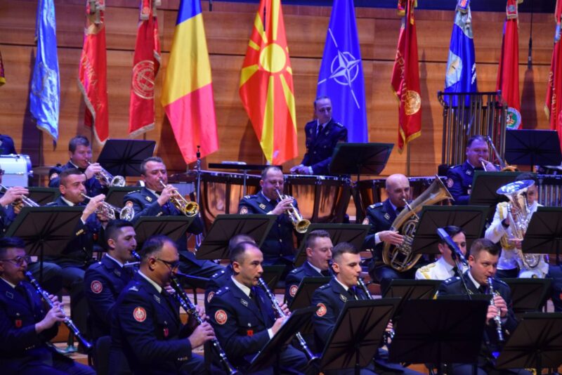 По пречекот на претседателката и врховен командант на Вооружените сили Гордана Сиљановска-Давкова и интонирањето на химната на Романија и македонската химна, здружениот оркестар, под диригентската палка на мајор Каталин Ион од Вооружените сили на Романија, концертот го започна со свечена фанфара, a продолжи со позната љубовна тема од Романија. Првиот дел беше заокружен со популарен сплет на светски хитови аранжирани за дувачки оркестар и композицијата „Концертна прослава”, со мотиви од романското поднебје.