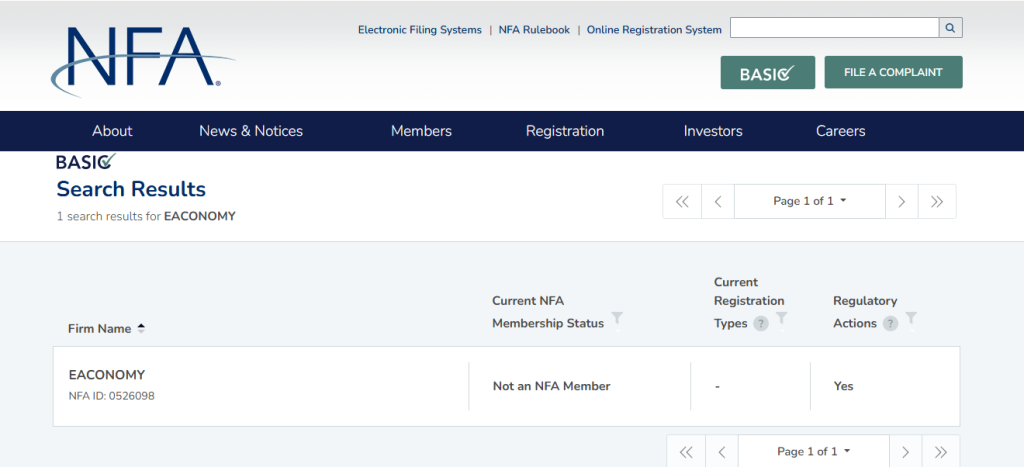 Фирмата исто така не е регистрирана во Националната асоцијација за фјучерси (NFA) во Америка, каде што е започната компанијата.