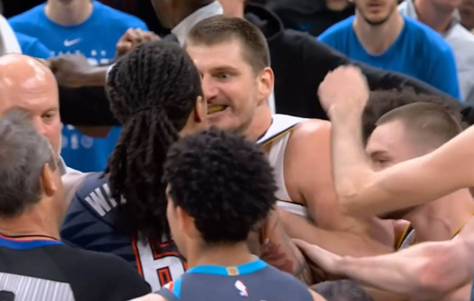 Никола Јокиќ имаше трипл-дабл на натпреварот против Оклахома, но никој не зборува за кошарка. Сите зборуваат за валканиот удар на Лу Дорт што го изнервира инаку мирниот играч на Сомбор и го принуди да започне вистинска борба на средина од играта.