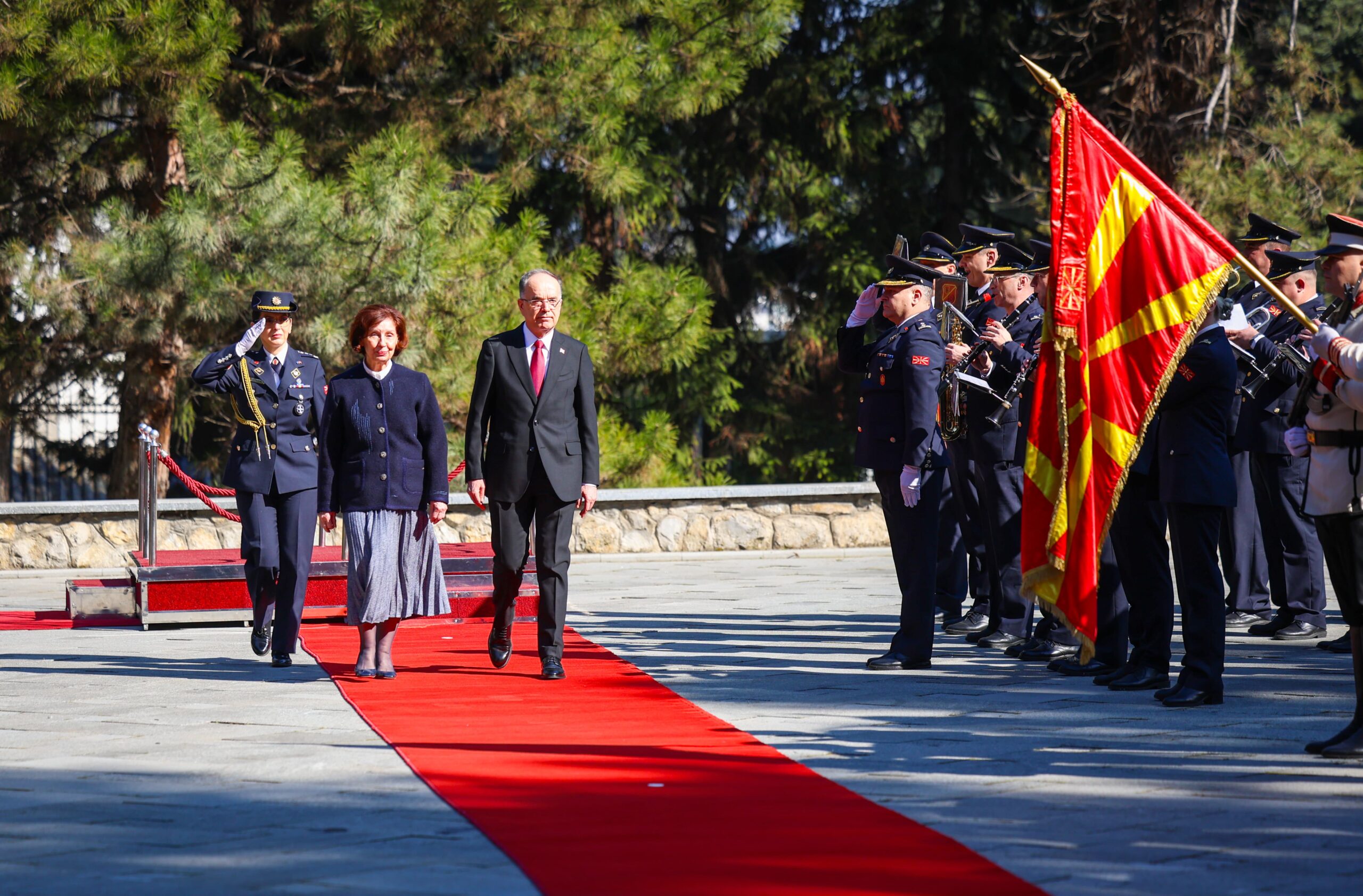 На официјална церемонија со највисоки државни и воени почести претседателката Гордана Сиљановска-Давкова го пречека албанскиот претседател Бајрам Бегај, кој престојува во официјална посета на земјава.