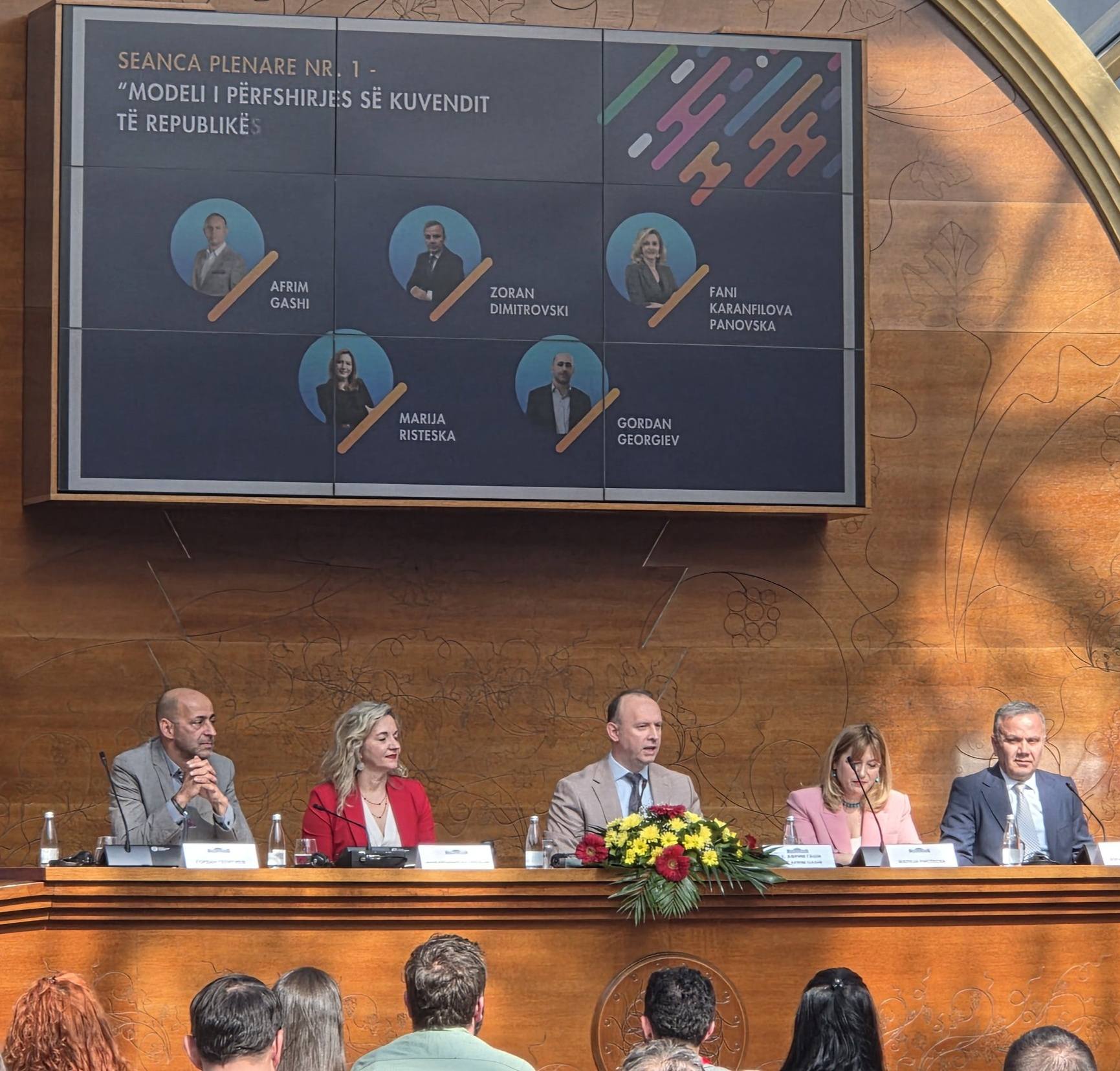 На денешната пленарна сесија 1 – „Моделот на вклучување на Собранието на Република Северна Македонија во процесот на пристапување кон ЕУ“, на прашања покрај Димитровски, одговараа собранискиот претседател Африм Гаши, заменик-претседателката на СДСМ – Фани Каранфилова-Пановска, Марија Ристеска – извршна директорка на Центарот за истражување и креирање политики – ЦРПМ, како и Гордан Георгиев – поранешен пратеник и претседател на Форумот за разумни политики.