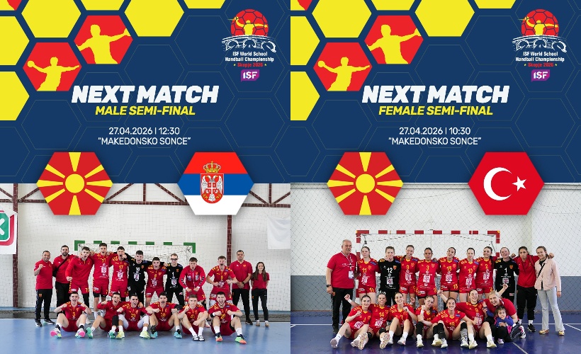 Двете кадетски репрезентации на Македонија денеска на Светското училишно првенство во ракомет ќе се појават во битката за медалите. На програмата се полуфиналните натпревари во кои и двете наши селекции влегуваат со желба за место во големото финале.