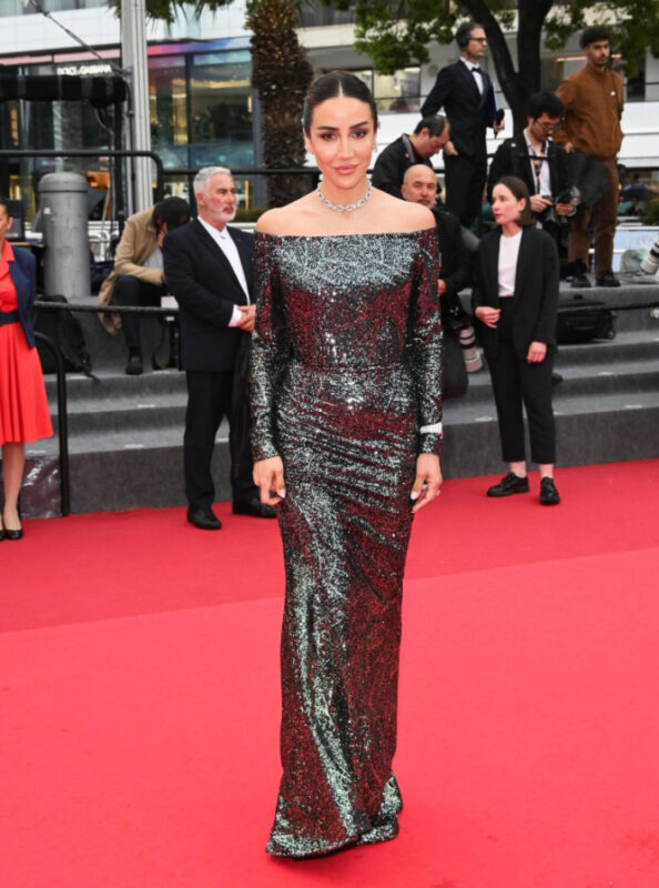 Таа носеше светкава креација од либанскиот моден дизајнер Ели Сааб.