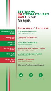 Од понеделник, 9 јуни до сабота 14 јуни, во Кинотеката на Република Северна Македонија во Скопје ќе се одржи XXV издание на „Неделата на италијанскиот филм“.