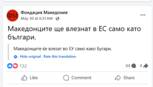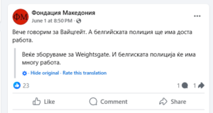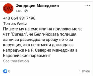 Од фондацијата „Македонија“ пак пишуваат отворено во пораките дека „Македонците ќе влезат во ЕУ само како Бугари“, а дека „Веќе се зборува за Вајцгејт и белгиската полиција ќе има многу работа“.
