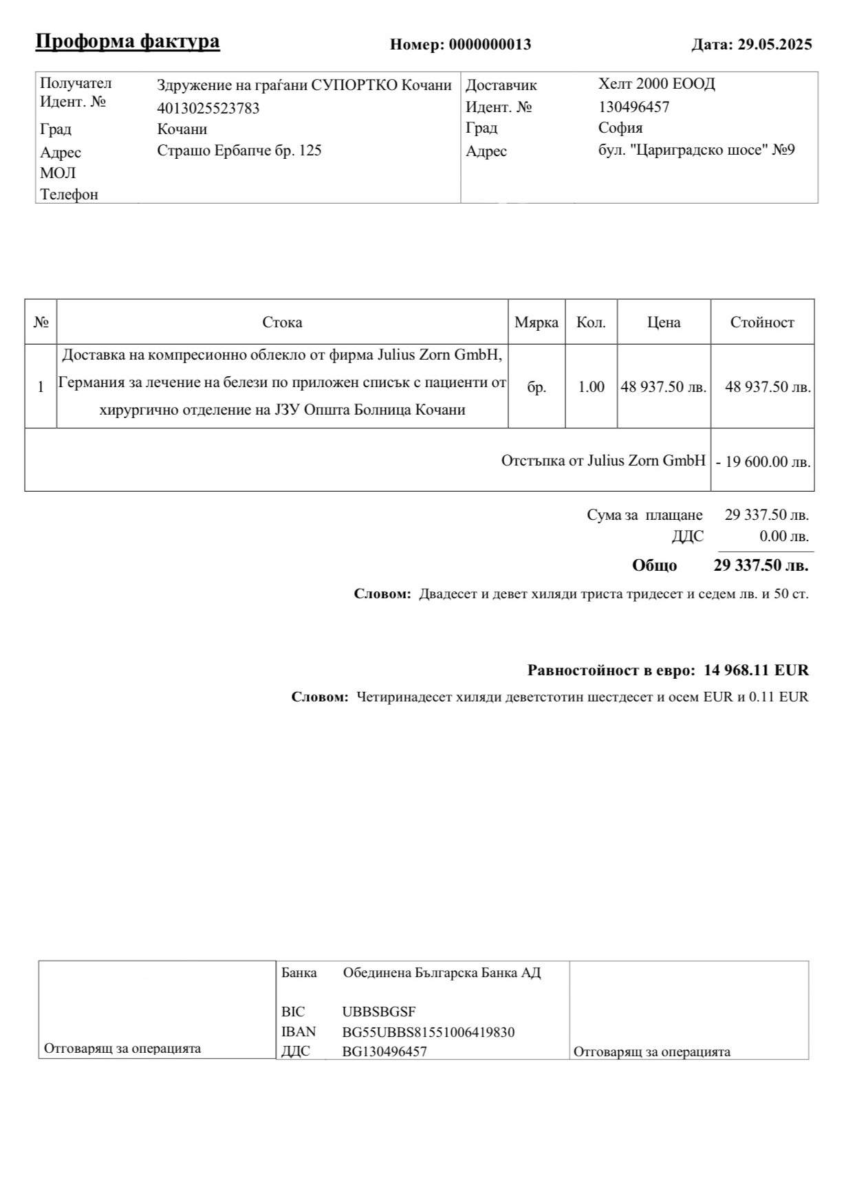 Особена благодарност од Support Kocani беше упатена до компаниите Julius Zorn GmbH и Health 2000, кои одобриле попуст во вредност од 19.600 лева, со што значително се олеснило обезбедувањето на неопходната медицинска помош за поголем број повредени.