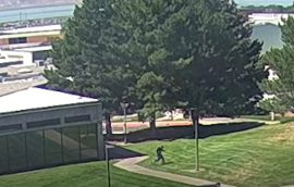 Новообјавеното видео прикажува лице кое носи шапка, очила за сонце и црна кошула со долги ракави како трча по покривот, се качува од работ на зградата и паѓа на земја. Се верува дека осомничениот избегал во локалното соседство откако испукал еден истрел и сè уште не е идентификуван.